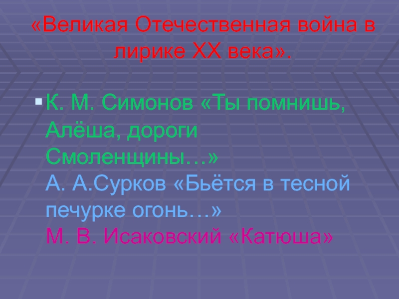 Слайд 1«Великая Отечественная война в лирике ХХ века».
