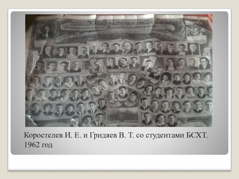 Коростелев И. Е. и Гридяев В. Т. со студентами БСХТ. 1962