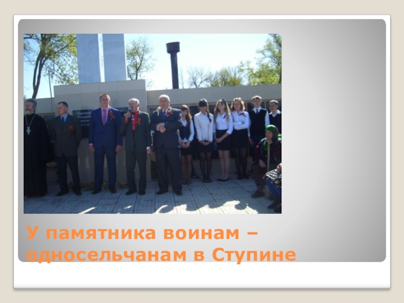 Слайд 25У памятника воинам – односельчанам в Ступине