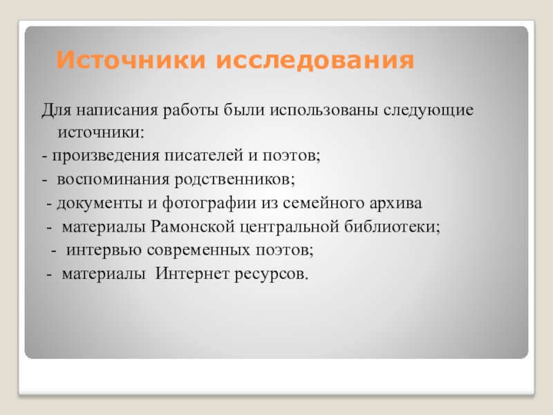 Вывод: литературная история рамонской земли постоянно привлекает внимание многих исследователей, но еще много нераскрытых имен остается на литературной карте нашего района.