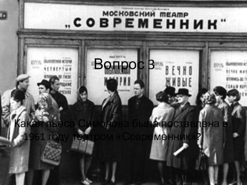 Вопрос 3Какая пьеса Симонова была поставлена в 1961 году театром «Современник»?