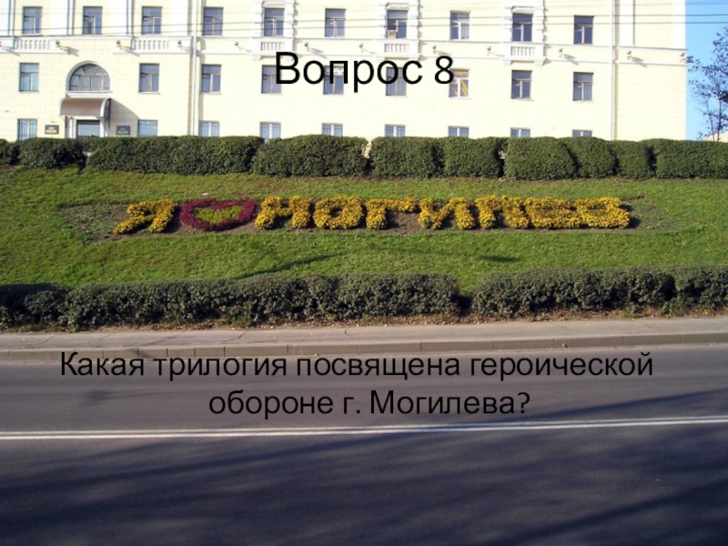 Вопрос 8Какая трилогия посвящена героической обороне г. Могилева?