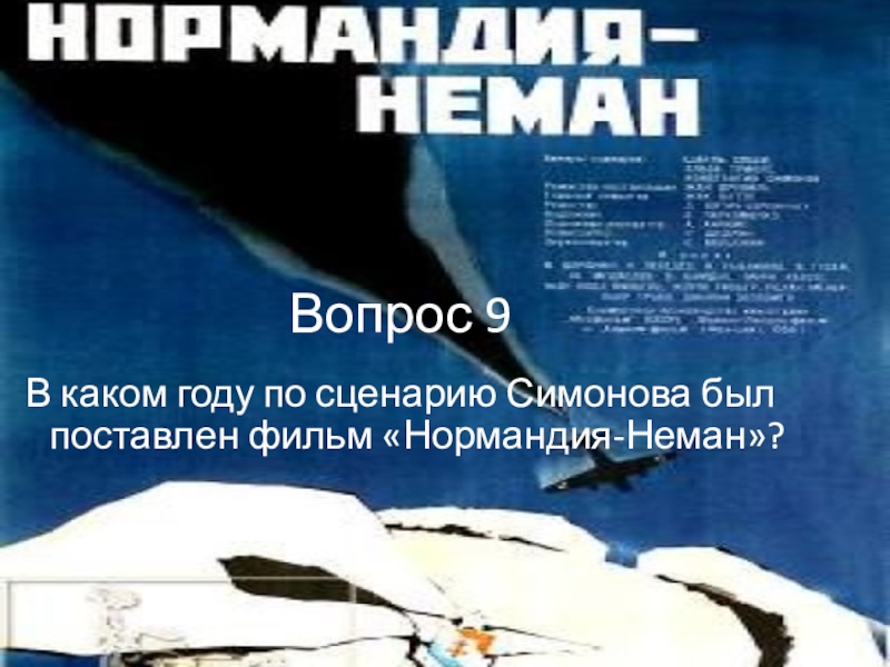 Вопрос 9В каком году по сценарию Симонова был поставлен фильм «Нормандия-Неман»?