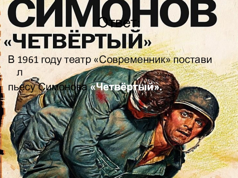 Ответ:В 1961 году театр «Современник» поставил пьесу Симонова «Четвёртый».