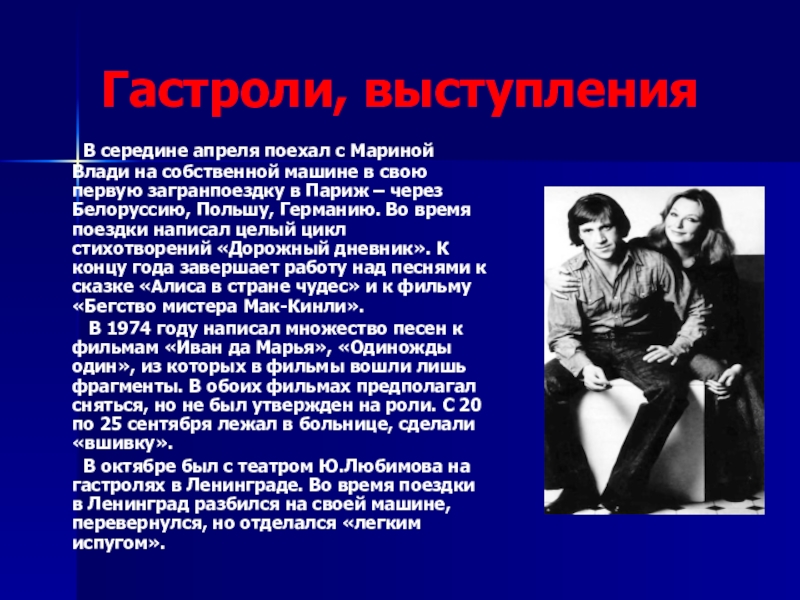 В середине апреля поехал с Мариной Влади