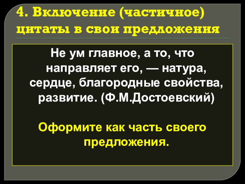 Слайд 164. Включение (частичное) цитаты в свои предложения