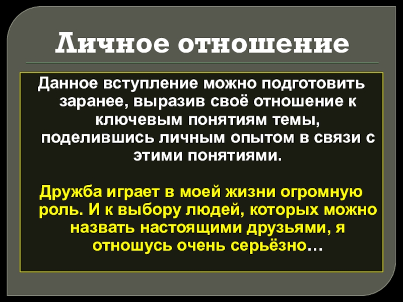 Данное вступление можно подготовить заранее, выразив своё отношение к ключевым