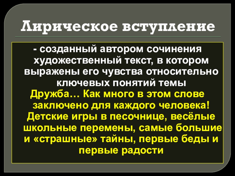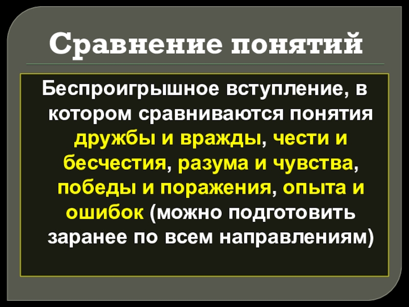 Беспроигрышное вступление, в котором сравниваются понятия дружбы и вражды, чести