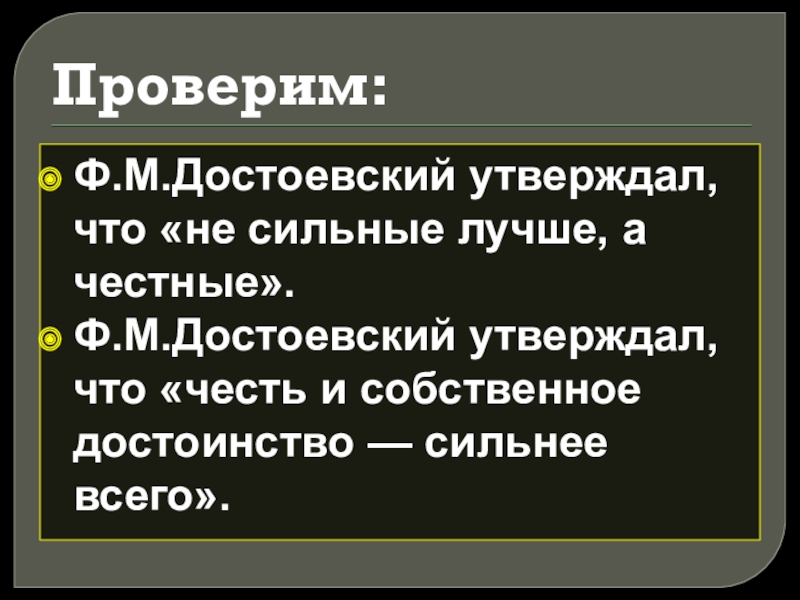 Ф.М.Достоевский утверждал, что «не сильные лучше, а честные».