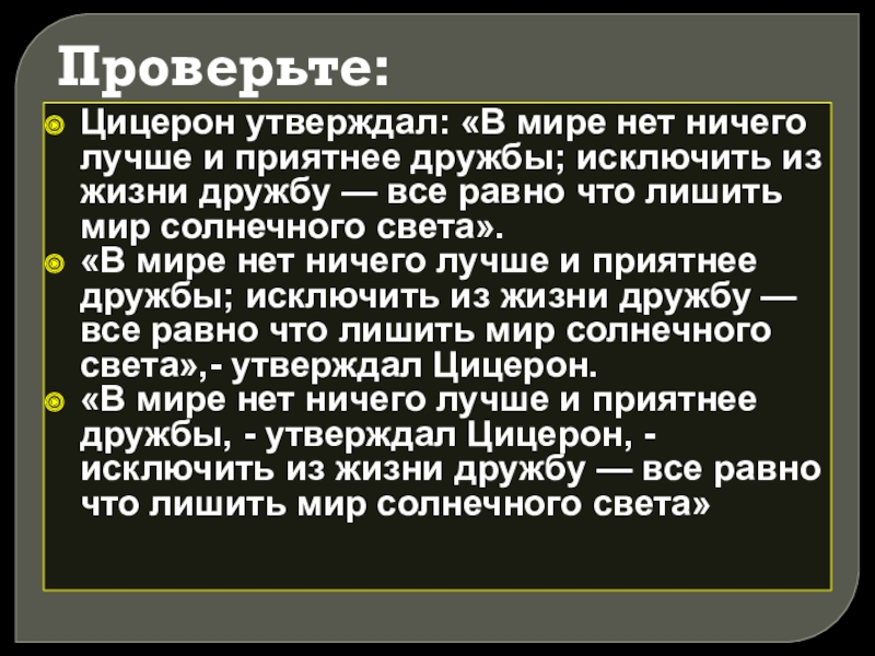 Цицерон утверждал: «В мире нет ничего лучше и приятнее дружбы; исключить