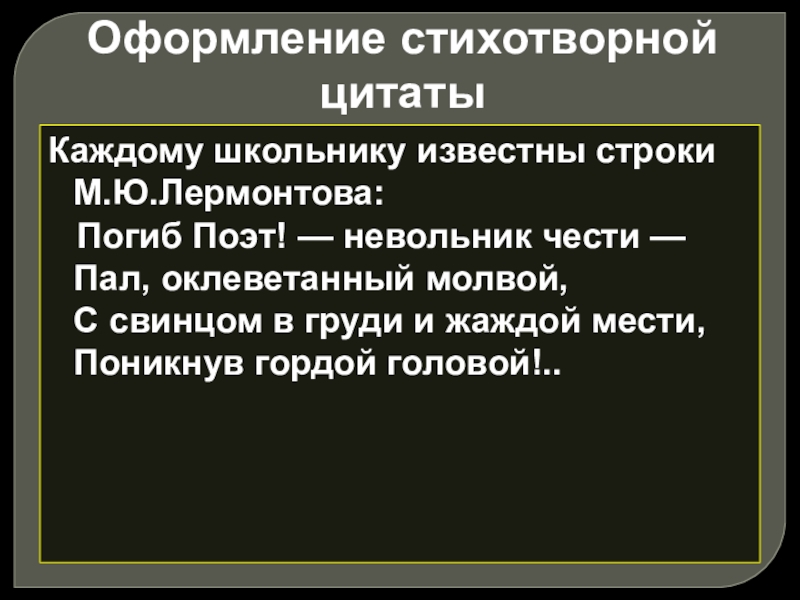 Каждому школьнику известны строки М.Ю.Лермонтова: