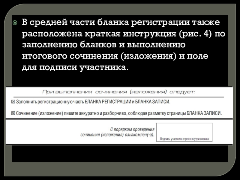 Слайд 26В средней части бланка регистрации также расположена краткая инструкция (рис. 4)