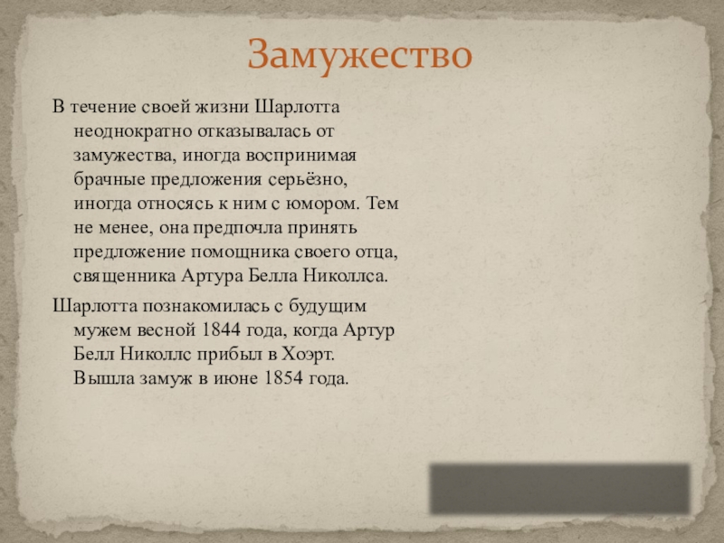Эмили и Энн скончались от туберкулёза лёгких в декабре 1848 года и мае 1849 года соответственно. Теперь Шарлотта и её отец остались одни.