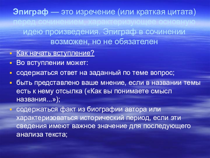 содержаться факт из биографии автора или характеризоваться исторический период, если эти сведения имеют важное значение для последующего анализа текста;