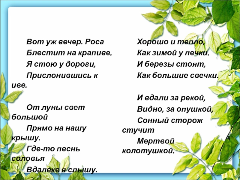 Вот уж вечер. Роса
