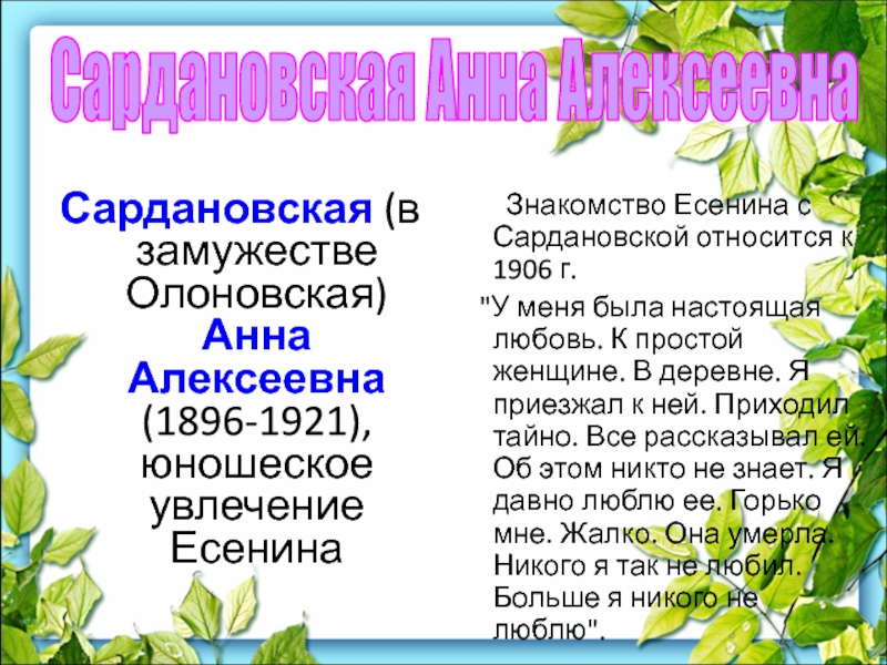 Слайд 23 Меньше чем через год, в апреле 1918 г., Есенин расстается с