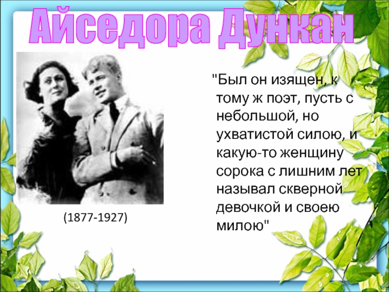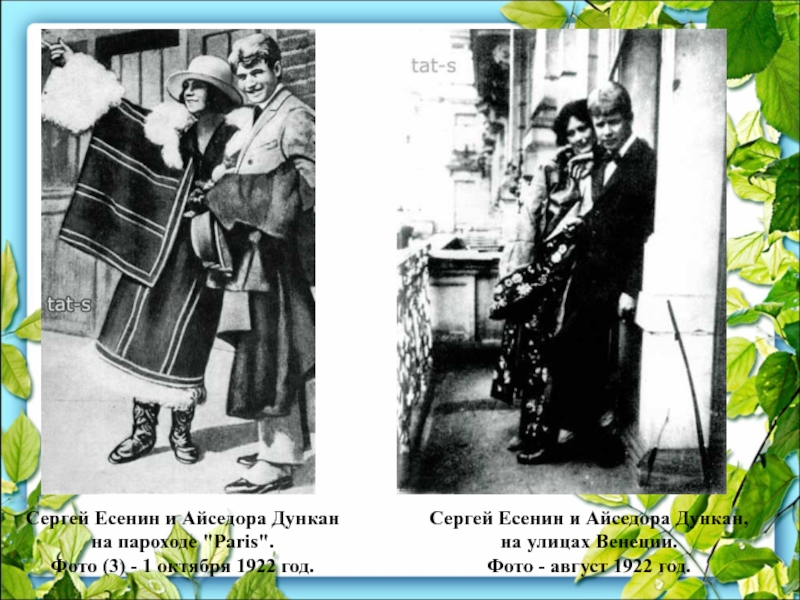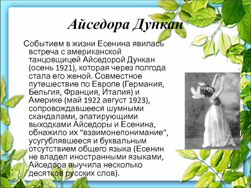 Слайд 48Женившись на американской танцовщице Айседоре Дункан, с мая 1922 до августа