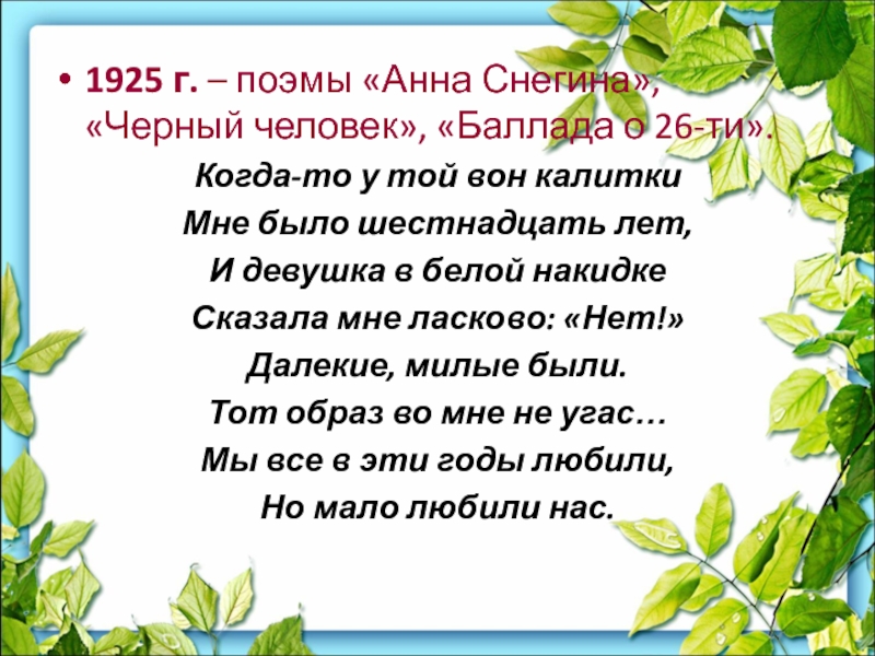 Слайд 56 В зимние месяцы 1924/25 гг., когда Есенин жил в