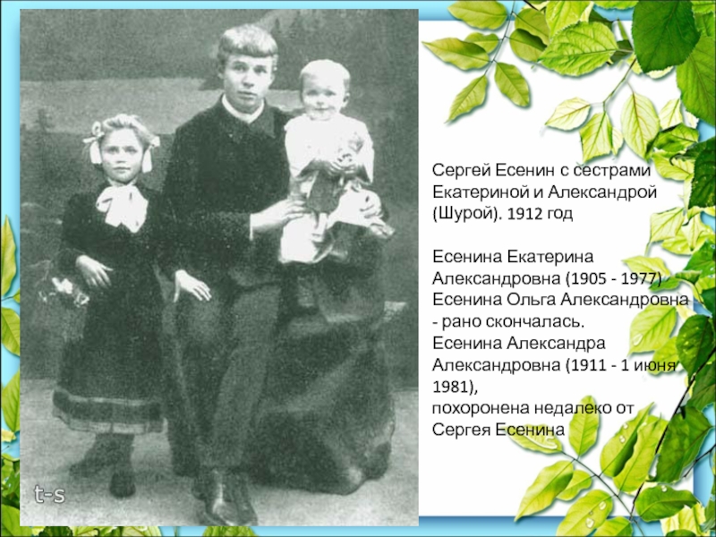 Слайд 7Сергей Есенин с сестрами Екатериной и Александрой (Шурой). 1912 год