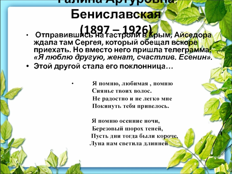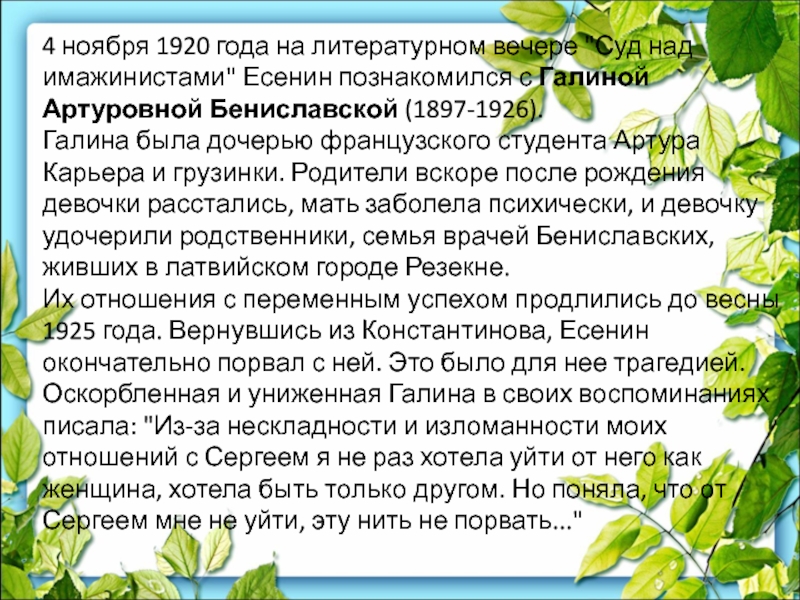 Слайд 57Галина Артуровна Бениславская
