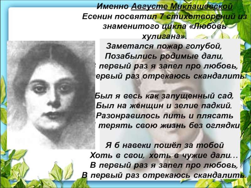 Слайд 55Именно Августе Миклашевской Есенин посвятил 7 стихотворений из знаменитого цикла «Любовь