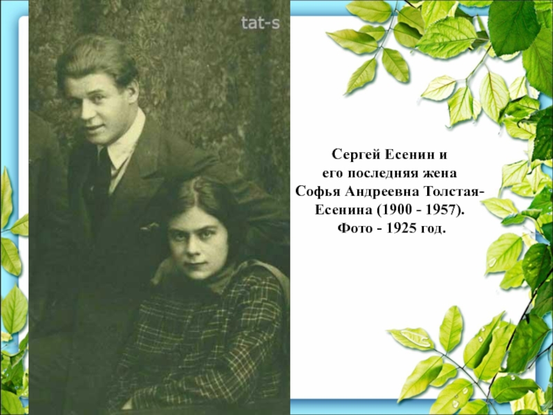 Татьяна Сергеевна Есенина(1918 - 1992).Член Союза писателей. Жила в Ташкенте. Директор музея Сергея Есенина. Два сына - Владимир и Сергей.