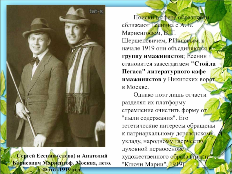 Слайд 26 Поиски в сфере образности сближают Есенина с А. Б. Мариенгофом, В.