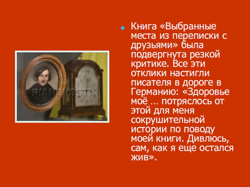 Слайд 20Книга «Выбранные места из переписки с друзьями» была подвергнута резкой критике.