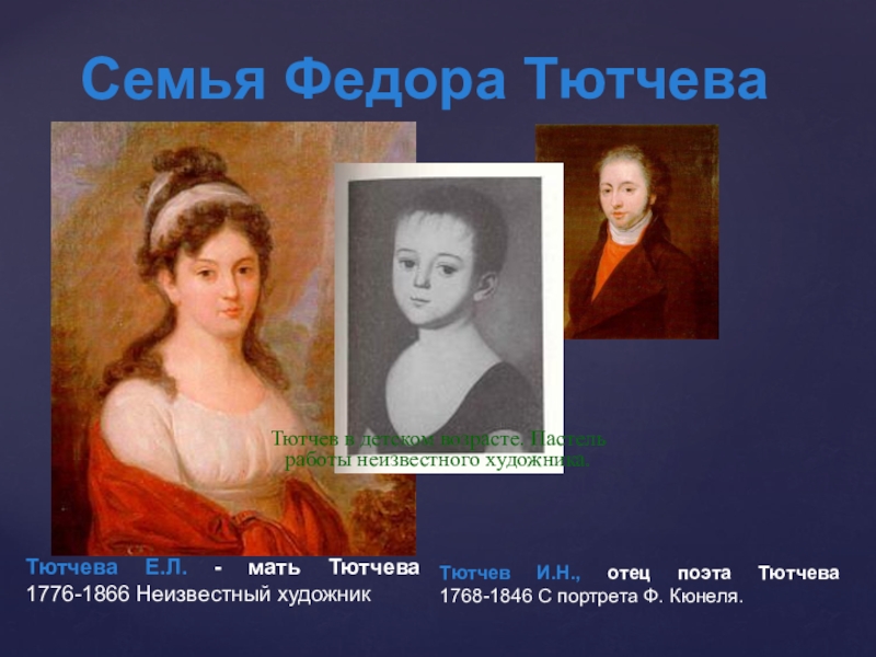 Тютчев в детском возрасте. Пастель работы неизвестного художника.