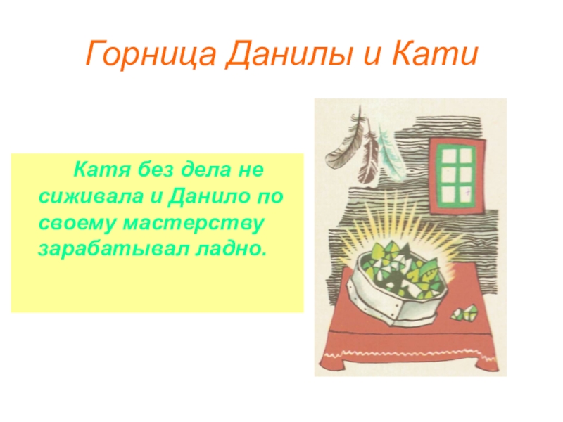 Горница Данилы и Кати		Катя без дела не сиживала и Данило по своему мастерству зарабатывал ладно.
