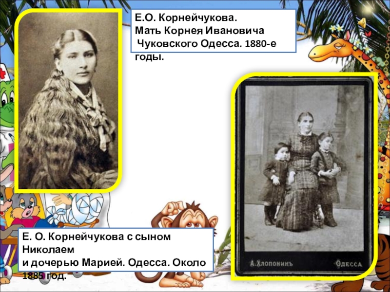 в 1882 году в бедной семье. Свое детство он провел в Одессе и Николаеве. В одесской гимназии он познакомился и подружился с Борисом Житковым, в будущем также знаменитым детским писателем. Чуковский часто ходил в дом к Житкову, где пользовался богатой библиотекой, собранной родителями Бориса.