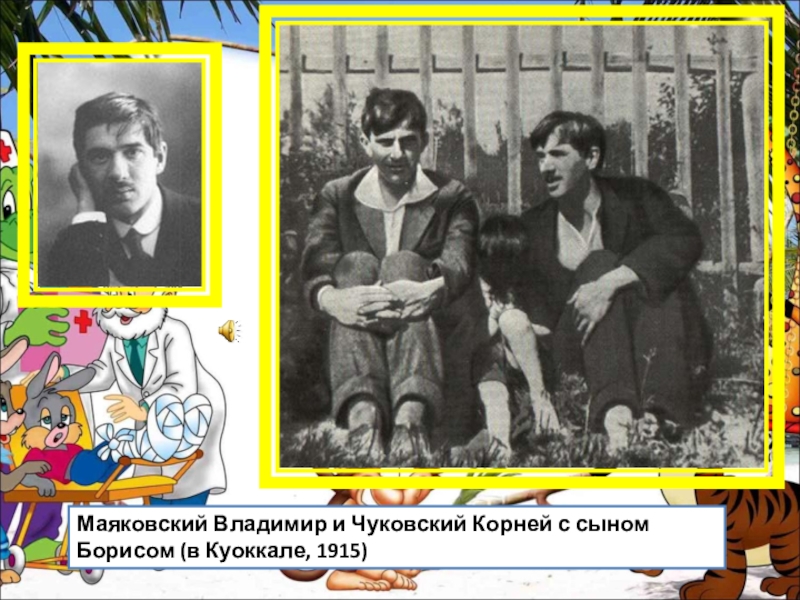Слайд 13Маяковский Владимир и Чуковский Корней с сыном Борисом (в Куоккале, 1915)