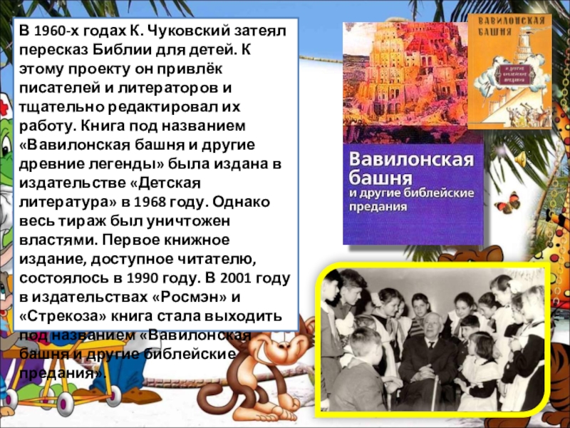 Слайд 19В 1960-х годах К. Чуковский затеял пересказ Библии для детей. К