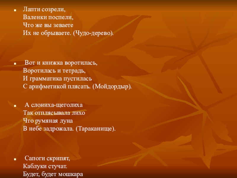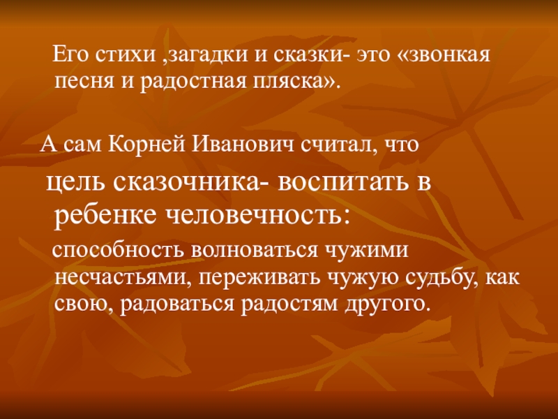 Слайд 10 Его стихи ,загадки и сказки- это «звонкая песня и