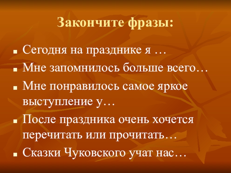 От мальчика убежали, улетели, ускакали: простыня, свечка, книжка, утюги, сапоги, пироги, кочерга, кушак, брюки, чулки, башмаки. А что еще? (одеяло, подушка, самовар) «Мойдодыр»