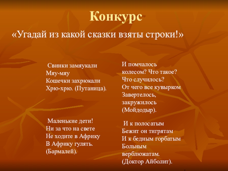 Таня и Ваня убежали в Африку. К кому они попали в плен? (Бармалей)