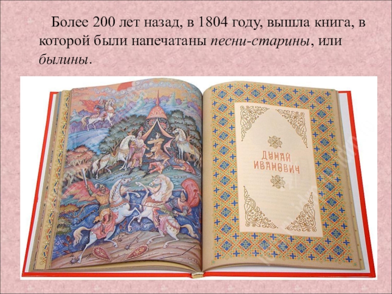 вышла книга, в которой были напечатаны песни-старины, или былины.
