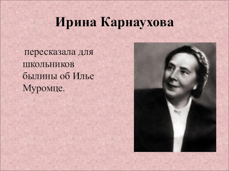 Ирина Карнаухова  пересказала для школьников былины об Илье Муромце.