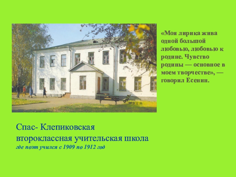 Слайд 6«Моя лирика жива одной большой любовью, любовью к родине. Чувство родины