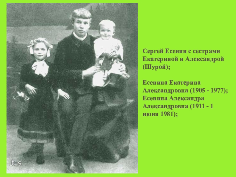 Слайд 10Сергей Есенин с сестрами Екатериной и Александрой (Шурой);