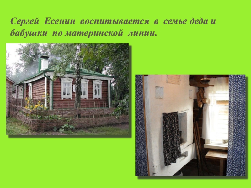 Слайд 5Сергей Есенин воспитывается в семье деда и бабушки по материнской линии.
