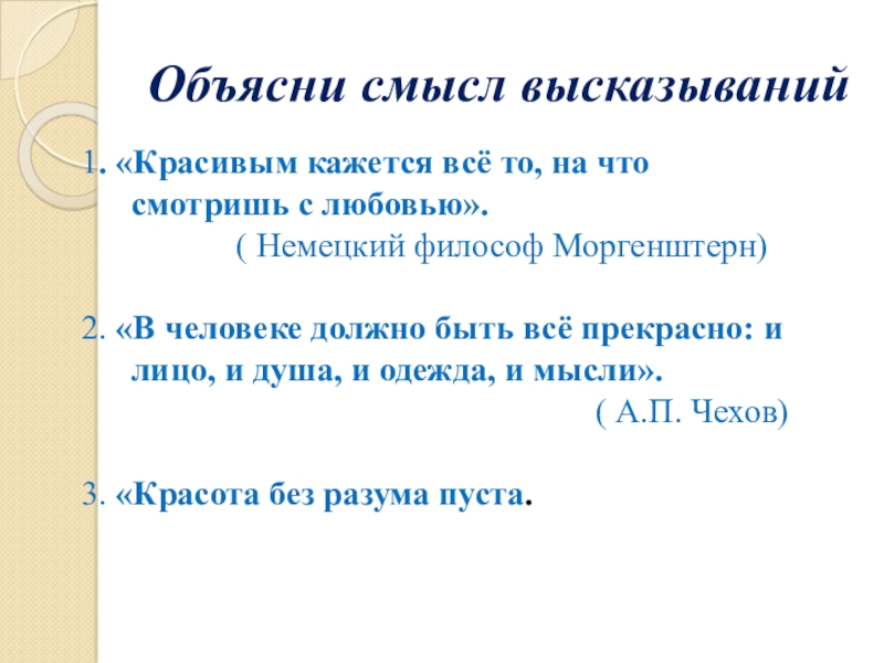 Объясни смысл высказываний1. «Красивым кажется всё то, на что смотришь с любовью».