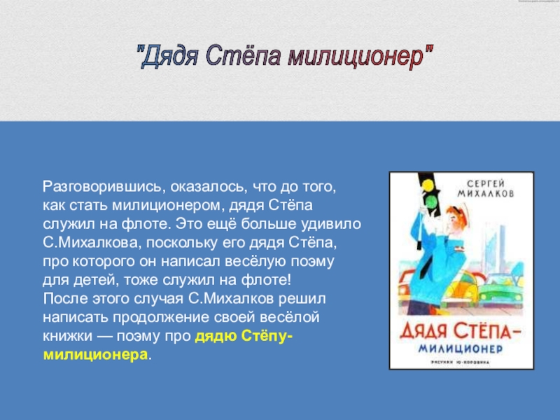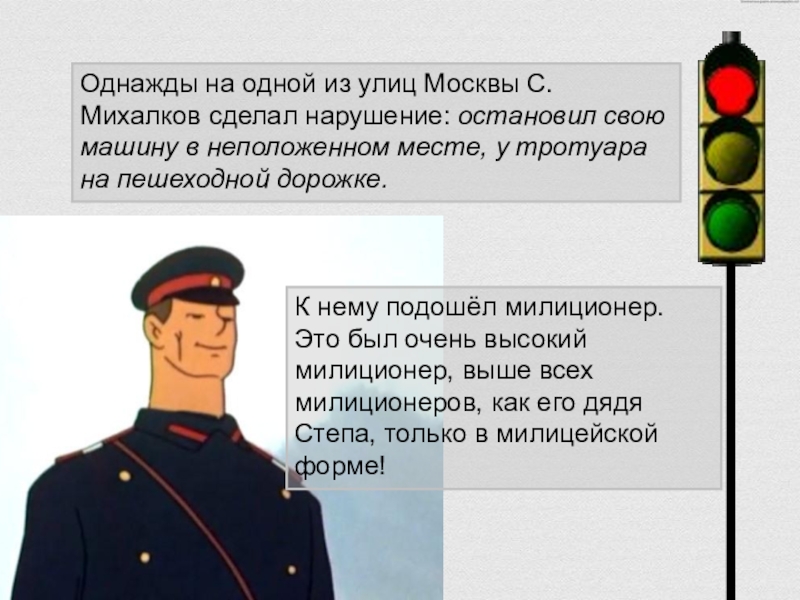 К нему подошёл милиционер. Это был очень высокий милиционер, выше всех милиционеров, как его дядя Степа, только в милицейской форме!