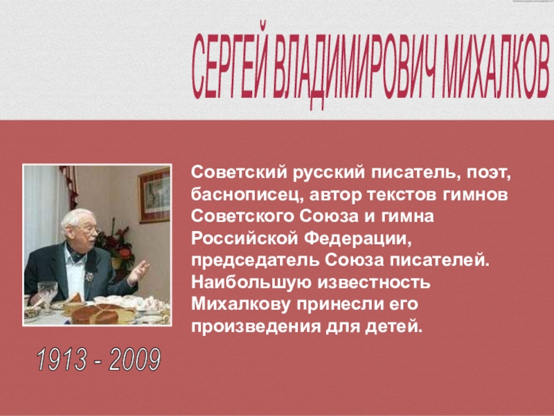 СЕРГЕЙ ВЛАДИМИРОВИЧ МИХАЛКОВ