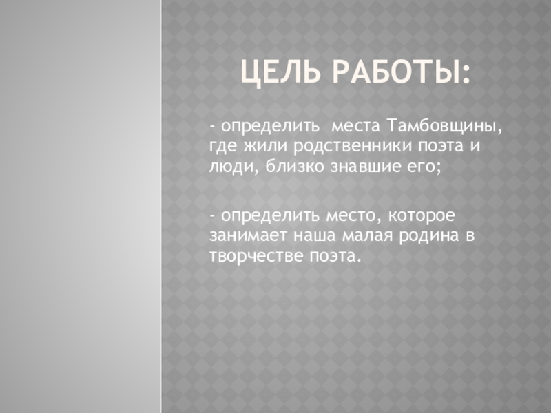 - определить место, которое занимает наша малая родина в творчестве поэта.