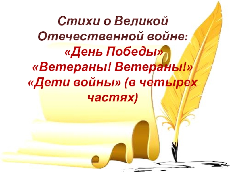 Слайд 3Стихи о Великой Отечественной войне: «День Победы» «Ветераны! Ветераны!» «Дети войны» (в четырех