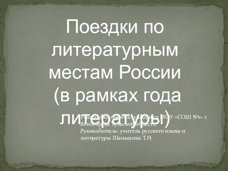 Руководитель: учитель русского языка и литературы Шаньшина Т.Н.
