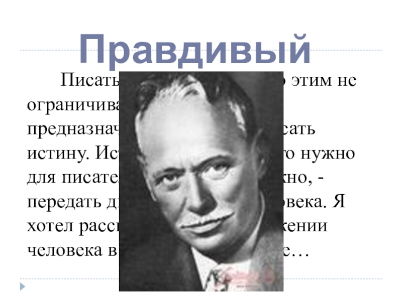 ограничивается писательское предназначение – сложнее писать истину. Истину!.. Больше всего нужно для писателя, ему самому нужно, - передать движение души человека. Я хотел рассказать об этом движении человека в Григории Мелехове…