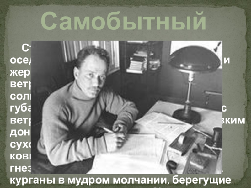 Слайд 2 Степь родимая! Горький ветер, оседающий на