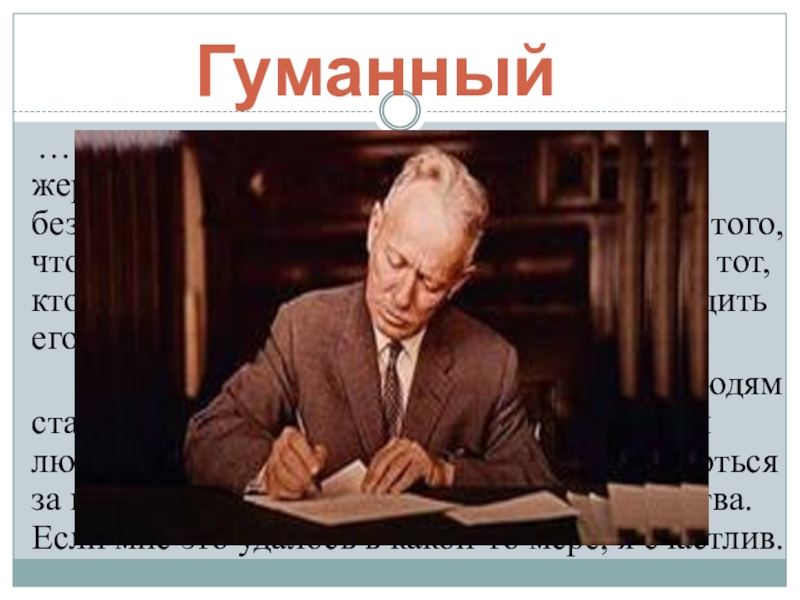 тот гуманист, кто только жалеет безвинную жертву и сокрушается по поводу того, что убийство существует на земле: гуманист тот, кто помогает отвести руку убийцы, обезвредить его злую волю.